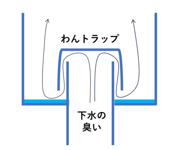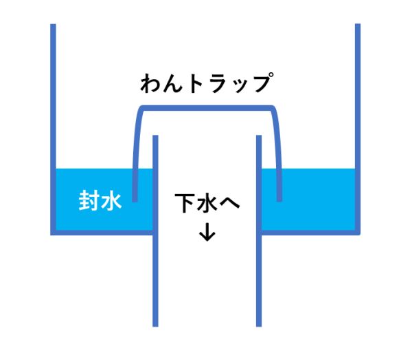 下水と水回り設備をつなぐ配管にある、臭いを止めるフタの役割を担うもの=それは水です。