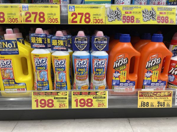 ひととおり排水口まわりのお掃除が終わったら、排水管の内部を洗浄するパイプフィニッシュなどを使い、手の届かないところも一気にきれいにしておきましょう。