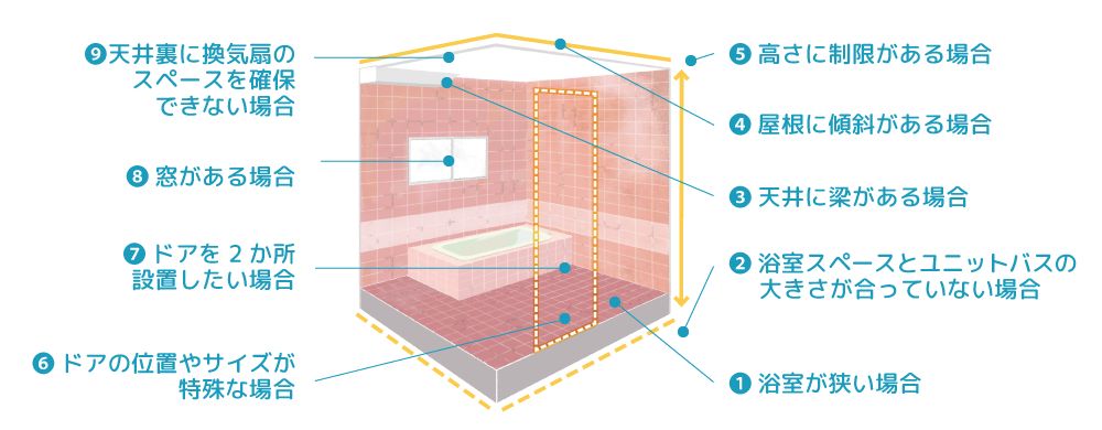 また、住宅の構造上、ユニットバスを施工できないという場合があります。