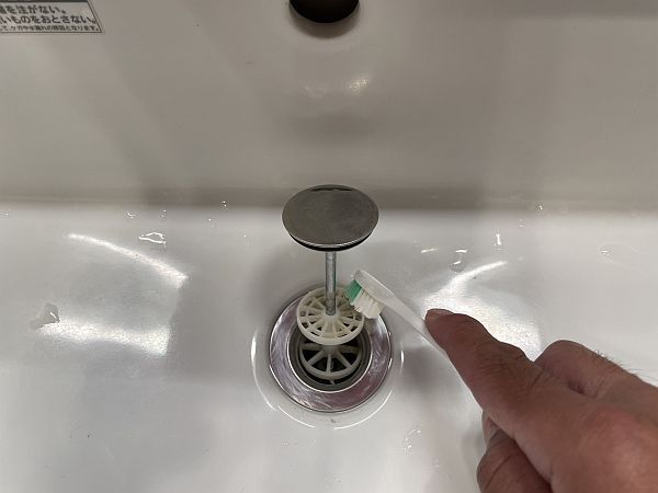 洗面化粧台の排水口は、市販の洗剤と使い古しの歯ブラシなどを使ってお掃除しましょう。