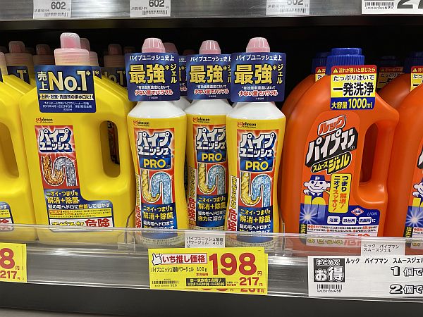パイプフィニッシュには、髪の毛などのタンパク質を溶かす次亜塩素酸ナトリウムが多く含まれるものと、油汚れを分解する水酸化ナトリウムが多く含まれるものがあります。