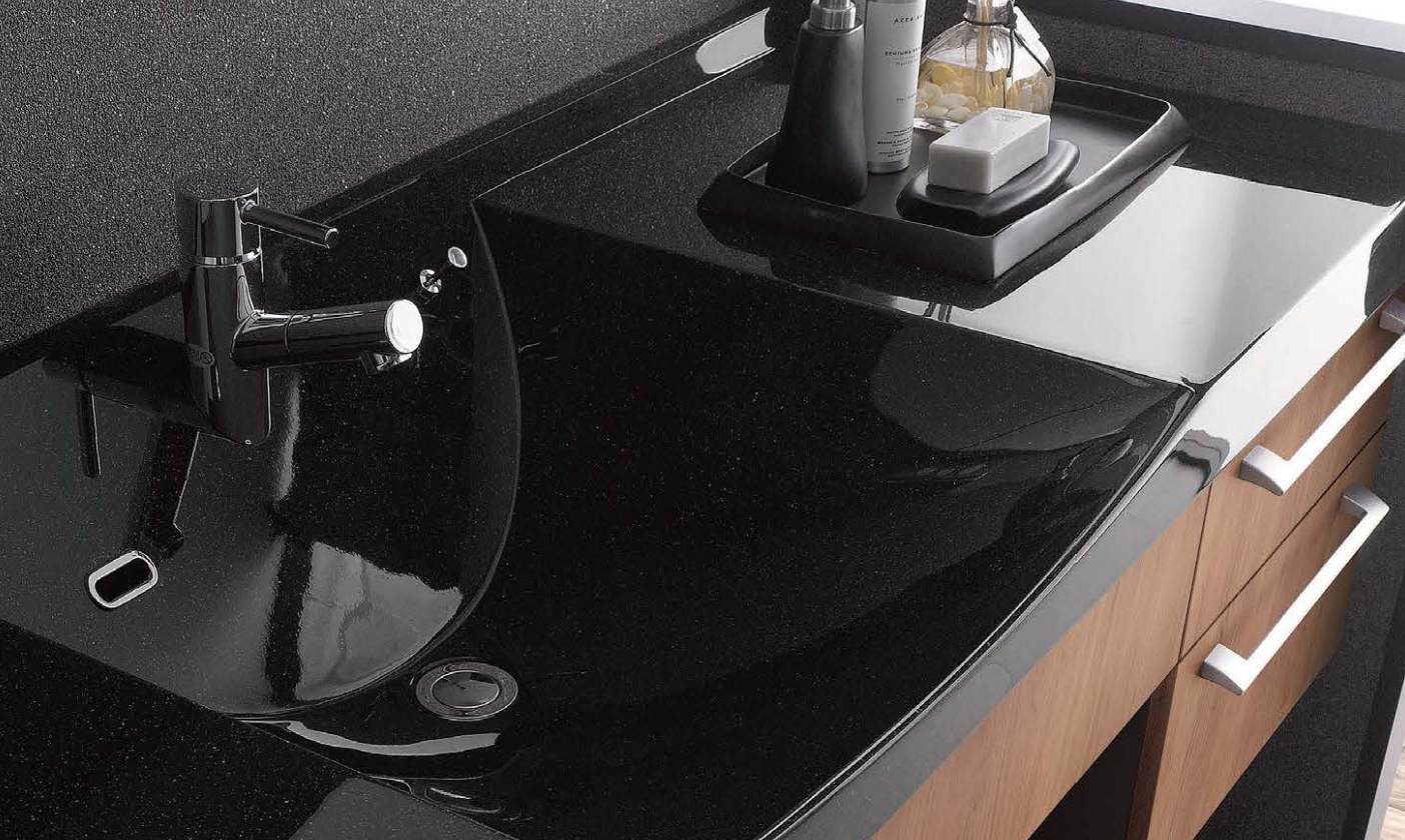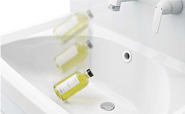 人工大理石は、樹脂でつくるので、化粧台と一体形成ができるので、デザイン性に富んだ形状を実現できます。また、つなぎめをなくせるので、汚れが溜まりにくいというメリットもあります。