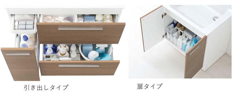 だだし、引き出しタイプは、スライドなどの造作物があるため、容量は少なくなります。このあたりはご家庭のご事情により、じっくりとお選びください。