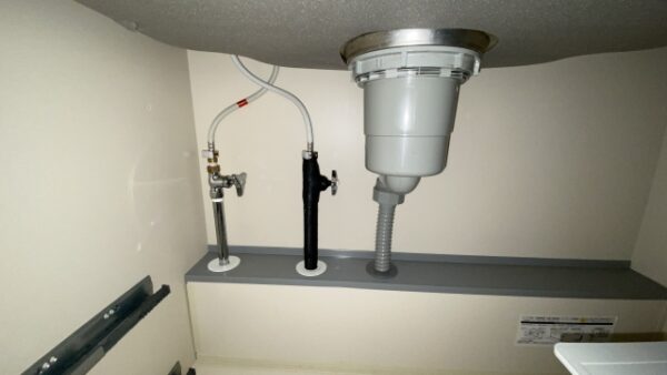 キッチンの下には、お水やお湯を供給する給水給湯管と、使ったお水やお湯を排水する排水管が通っています。