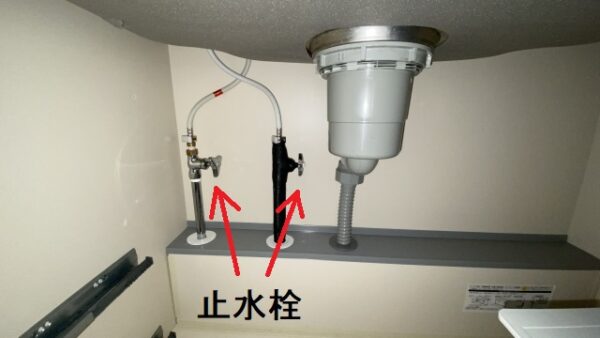 最初に、漏れている給水給湯管の止水栓を止めます。