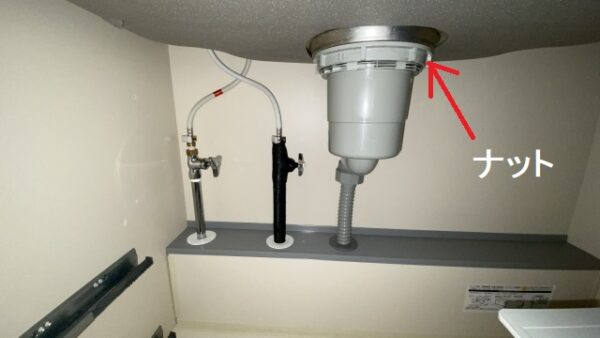 ナットを外すと、固定されていた排水トラップが緩みます。