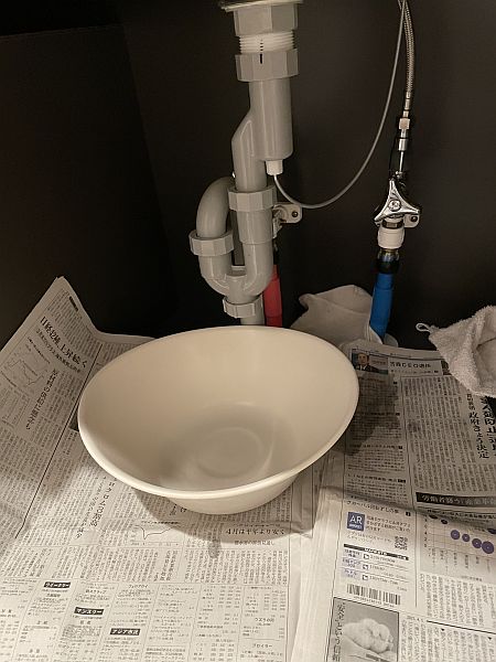 - S字トラップ内部には、水が溜まっていますので、取り外す前にバケツか洗面器などを用意し、外した際にこぼれる水を受けられるように準備しておきます。