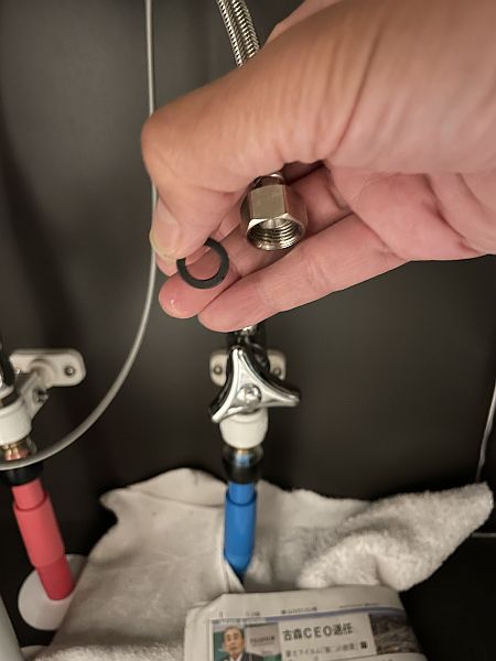 2.給水口からの水漏れは、パッキンの劣化が原因と考えられるので、交換します。