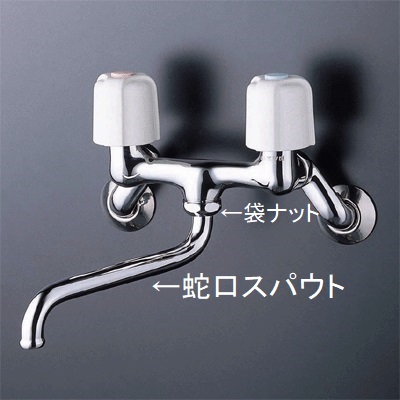 袋ナットをモンキーレンチで時計と反対まわりにまわし、蛇口スパウトを取り外します。
